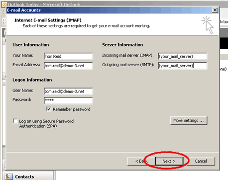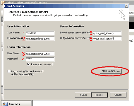 5. Note: You will receive these email settings from your mail administrator. Enter the following items;
