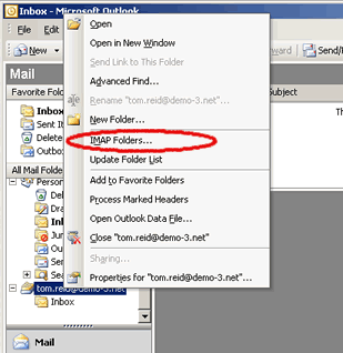 11. To see all the folders that are available to you on the IMAP server (in particular the SPAM folder) right-click on the parent folder with your email address. Then select 'IMAP Folders ...'