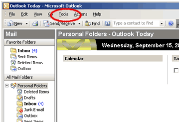System: Windows 1. Open Outlook and click on the Tools menu.