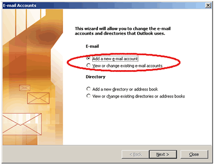 3. The Email Account wizard opens. Select 'Add a new e-mail account' and press 'Next'.
