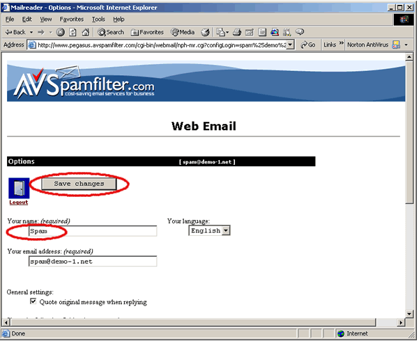 2. The first time you use POP3 web email you'll need to enter a name for the account. Enter 'Spam' and click on the 'Save Changes' button.