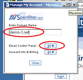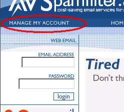 Accessing the Email Control Panel 1. Click on 'Manage My Account' on the AVSpamfilter banner.