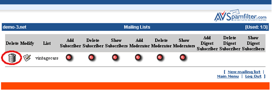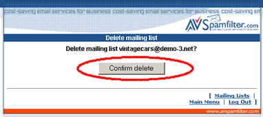 Deleting an Existing Mailing List 1. Click on 'Mailing Lists' in the Main Menu.