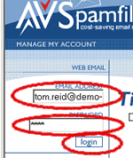 AVSpamfilter banner. Then click on the Login button.