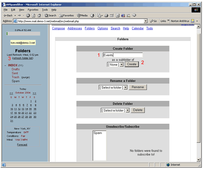 email folder list. Work with a folder by clicking on its name.