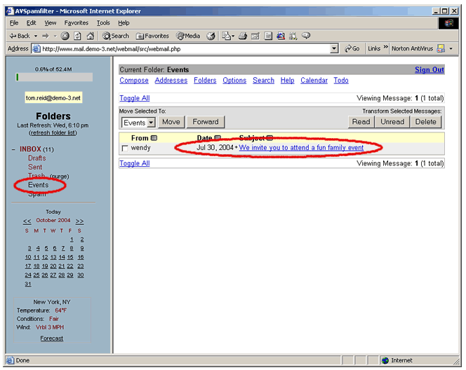 events has been added to the folder list. Now click on 'INBOX' to return