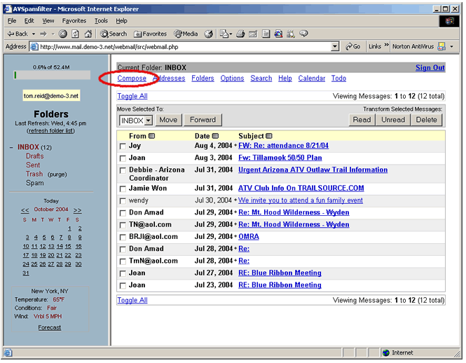 bar. Click on a link to compose emails, edit your address book, add/change/delete
