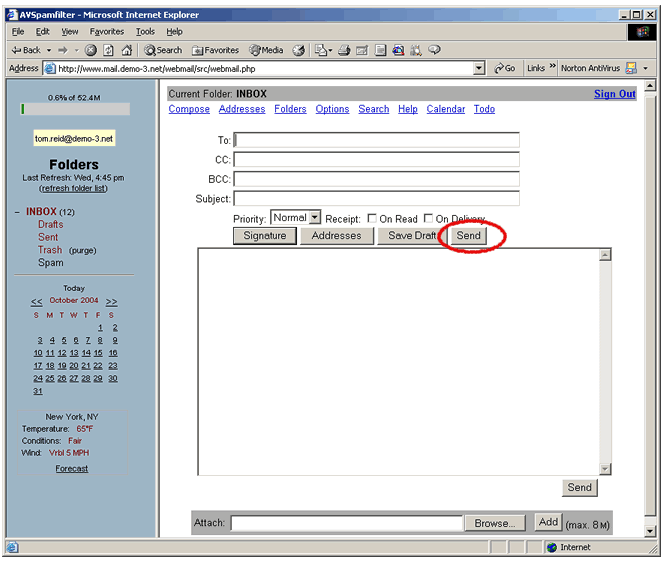 addresses, the subject and body of your email. Then click on 'Send.' You