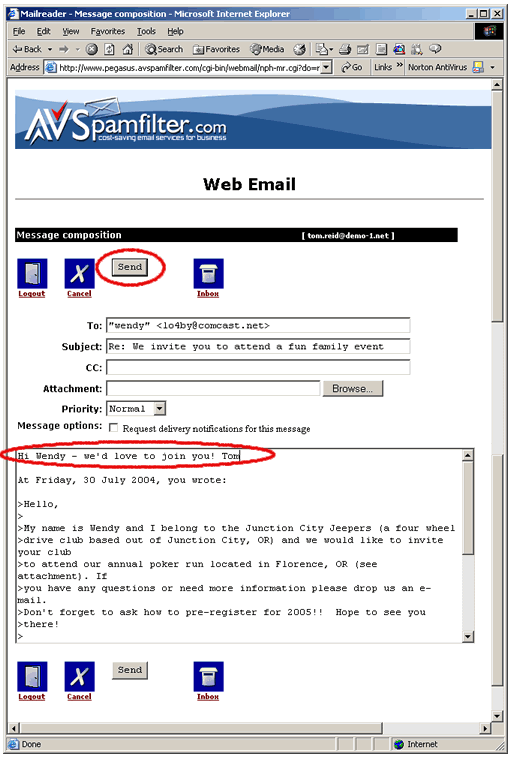 or 'bcc' addresses, the subject and body of your email. Then click on