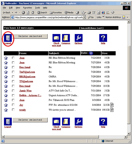 you are finished be sure to press the Logout button. Otherwise your deletions